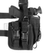 De SOF-holster is uitgerust met drie geïntegreerde magazijnzakken (één is extra groot en er past ook een geluiddemper in) en een geïntegreerd beenpaneel - vastgemaakt met een riemclip en elastische banden aan de dij.
